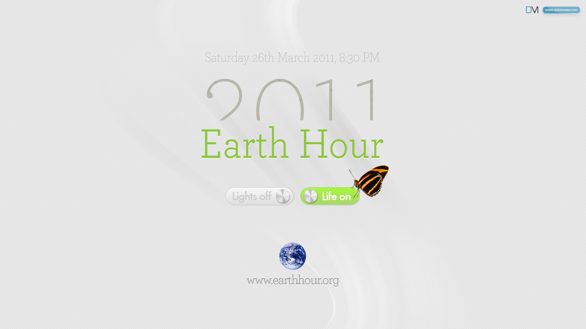 Description: A white background with a green and black butterfly on it's back side and the words 2011 earth hour.