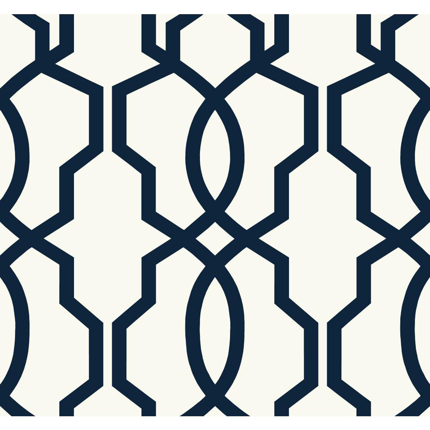 Description: A white and blue wallpaper with a trellis pattern on it's side.