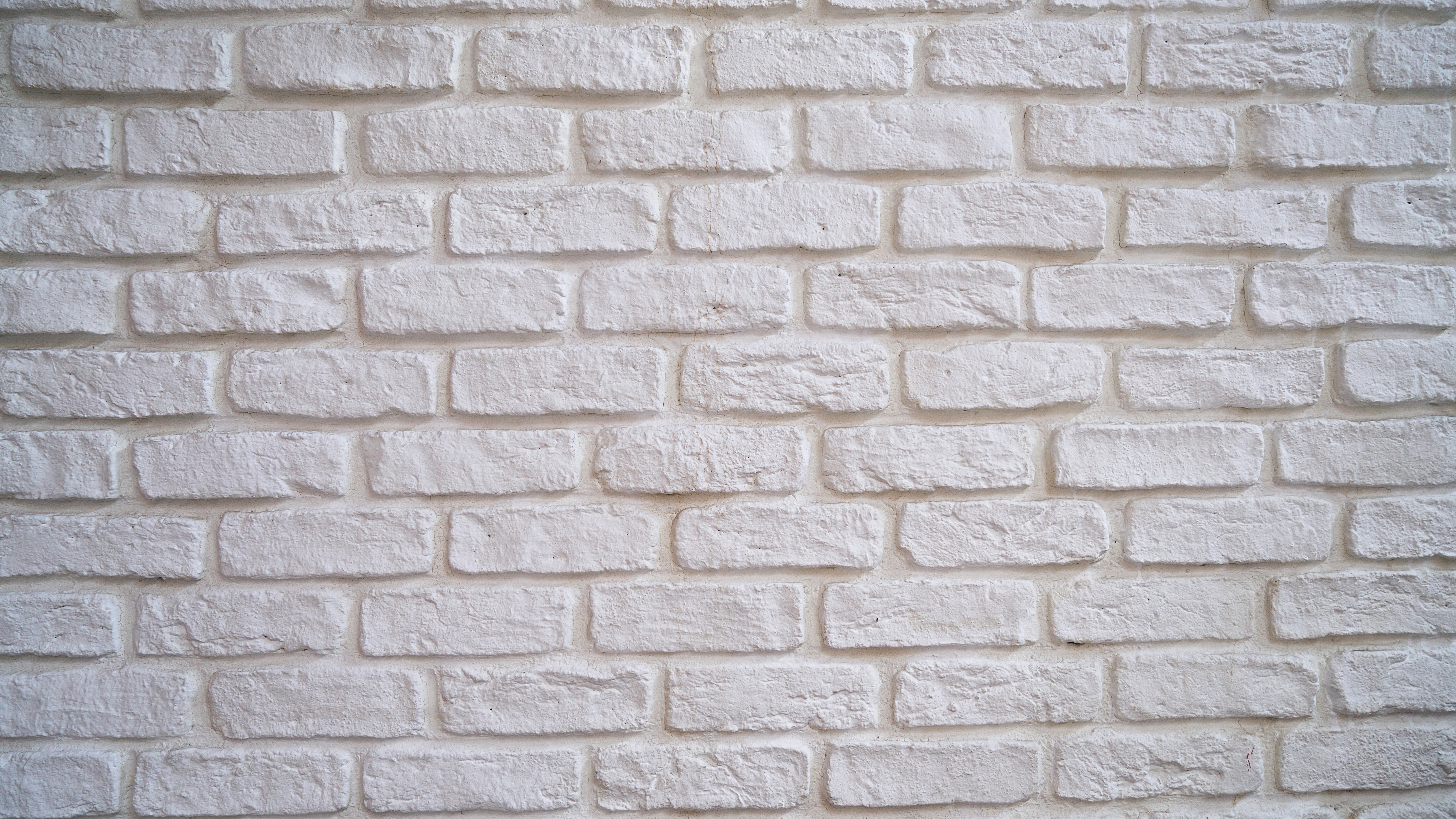 Description: A white brick wall with a black cat sitting on the ground in front of it and a black cat standing on the ground.