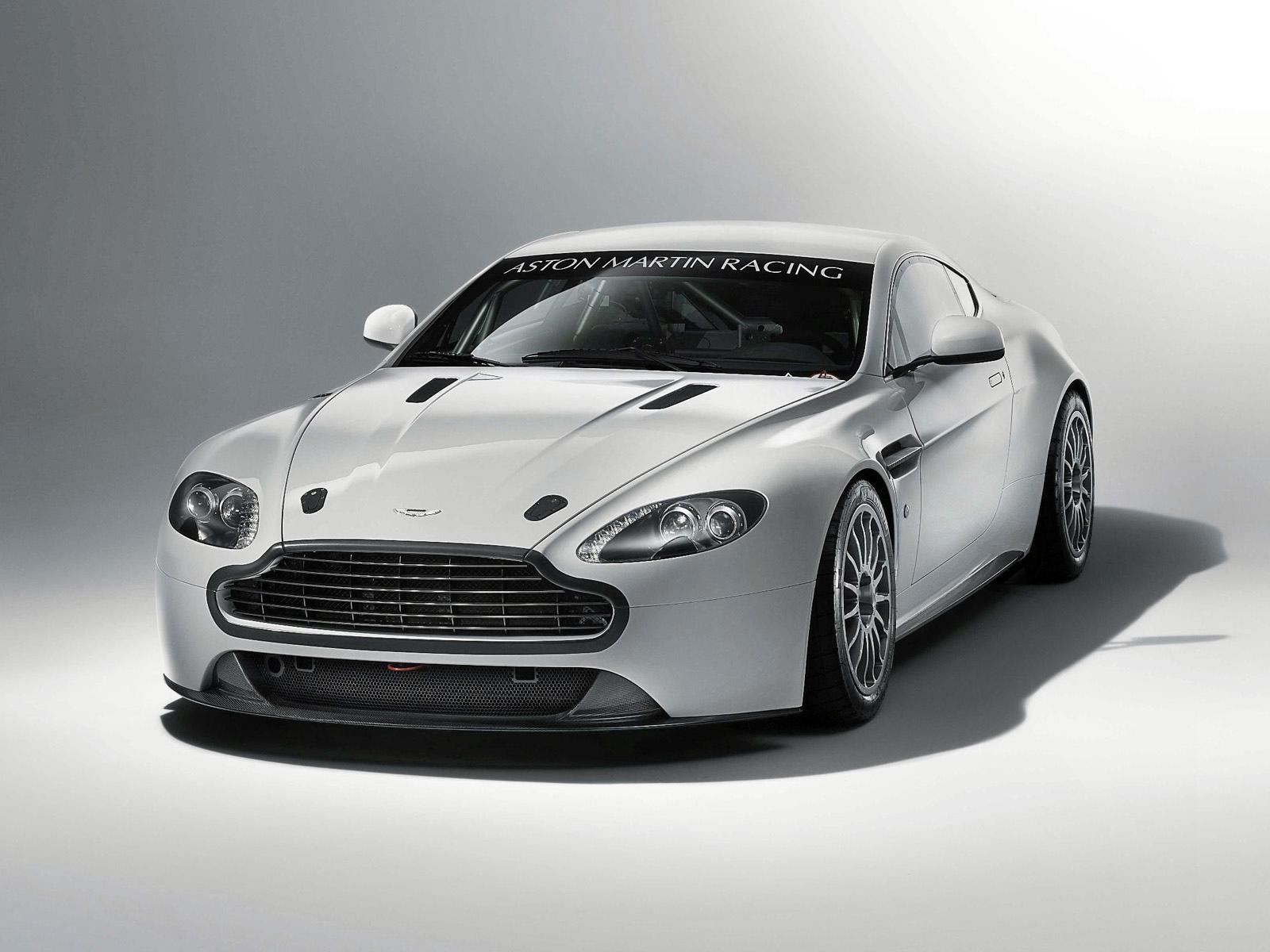 Description: A white car with a black stripe on it's hood and hood hood is shown in a studio.