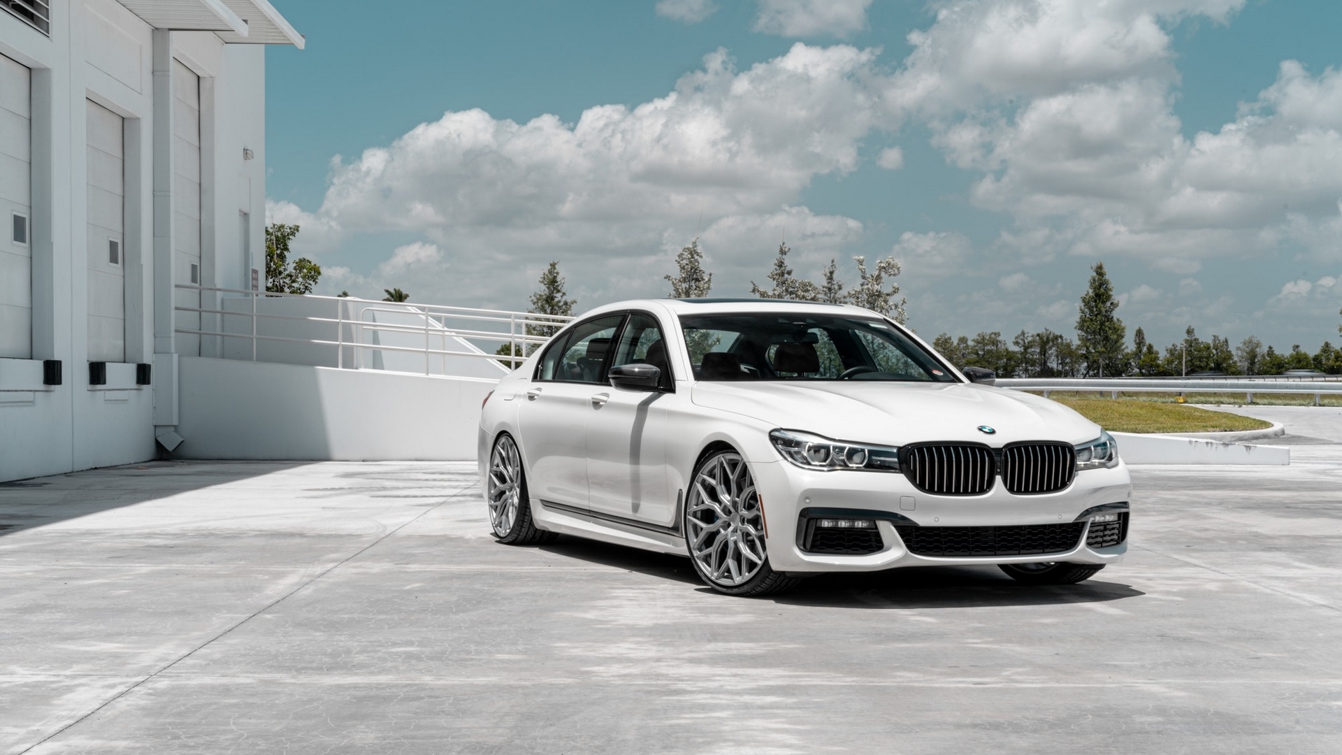 White car building clouds sky - free wallpaper for desktop | 5desktop.com