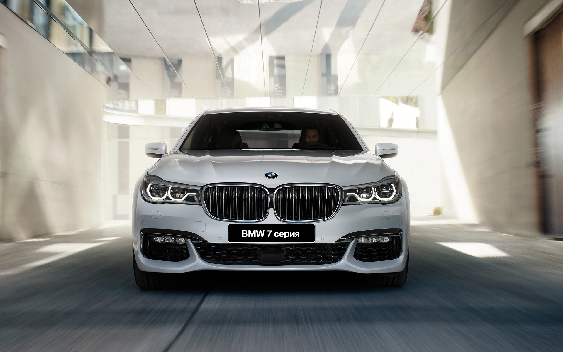 Description: A white car driving down a street next to a building with a sign on it's front window.