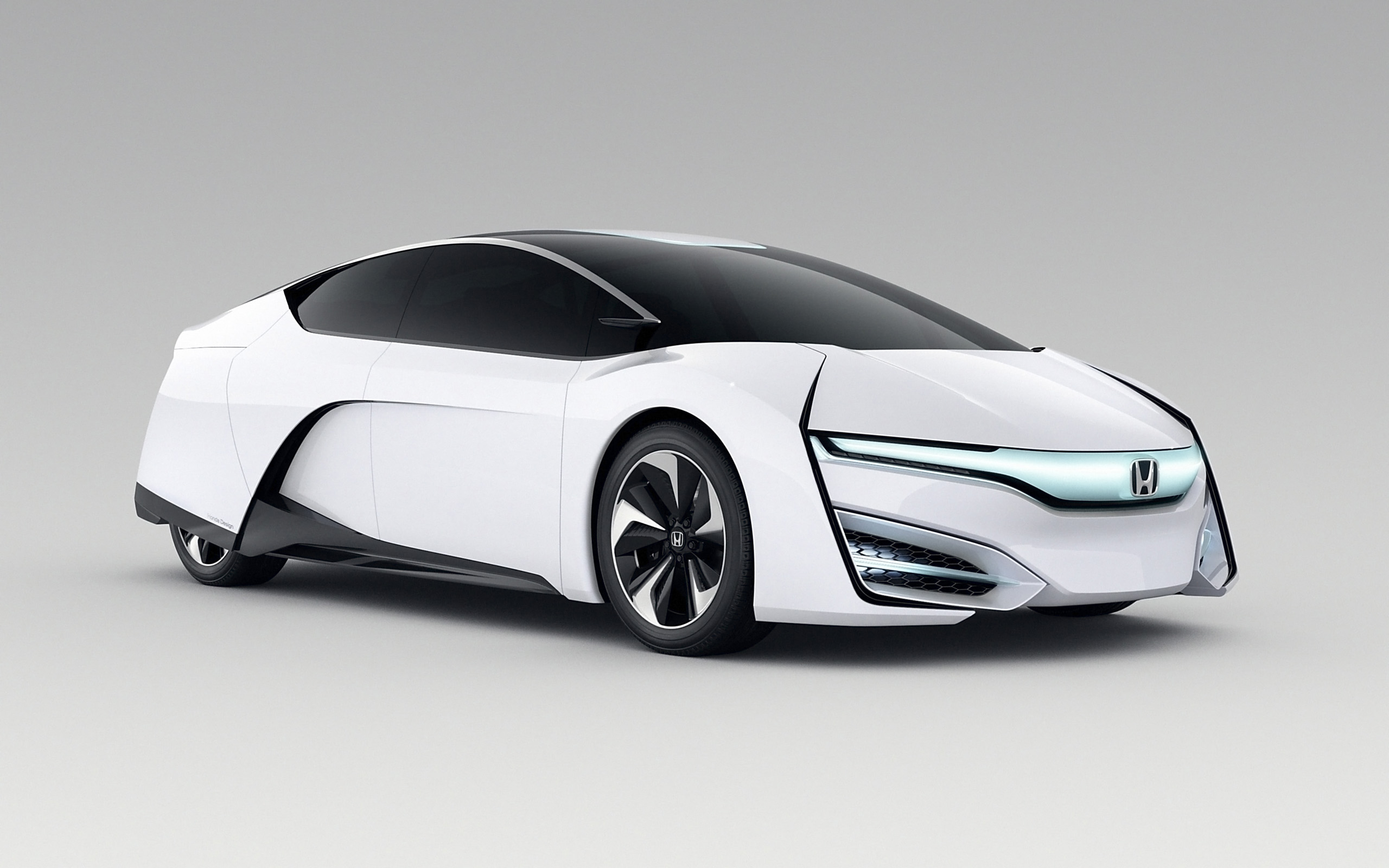 Description: A white car is shown in a studio photo with a gray background and a gray background behind it.