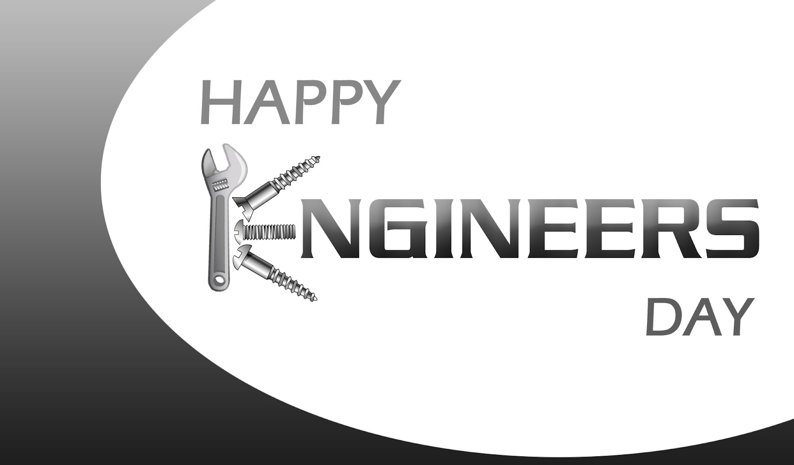 Description: A white circle with a wrench and screwdriver on it and the words happy engineers day written in black.