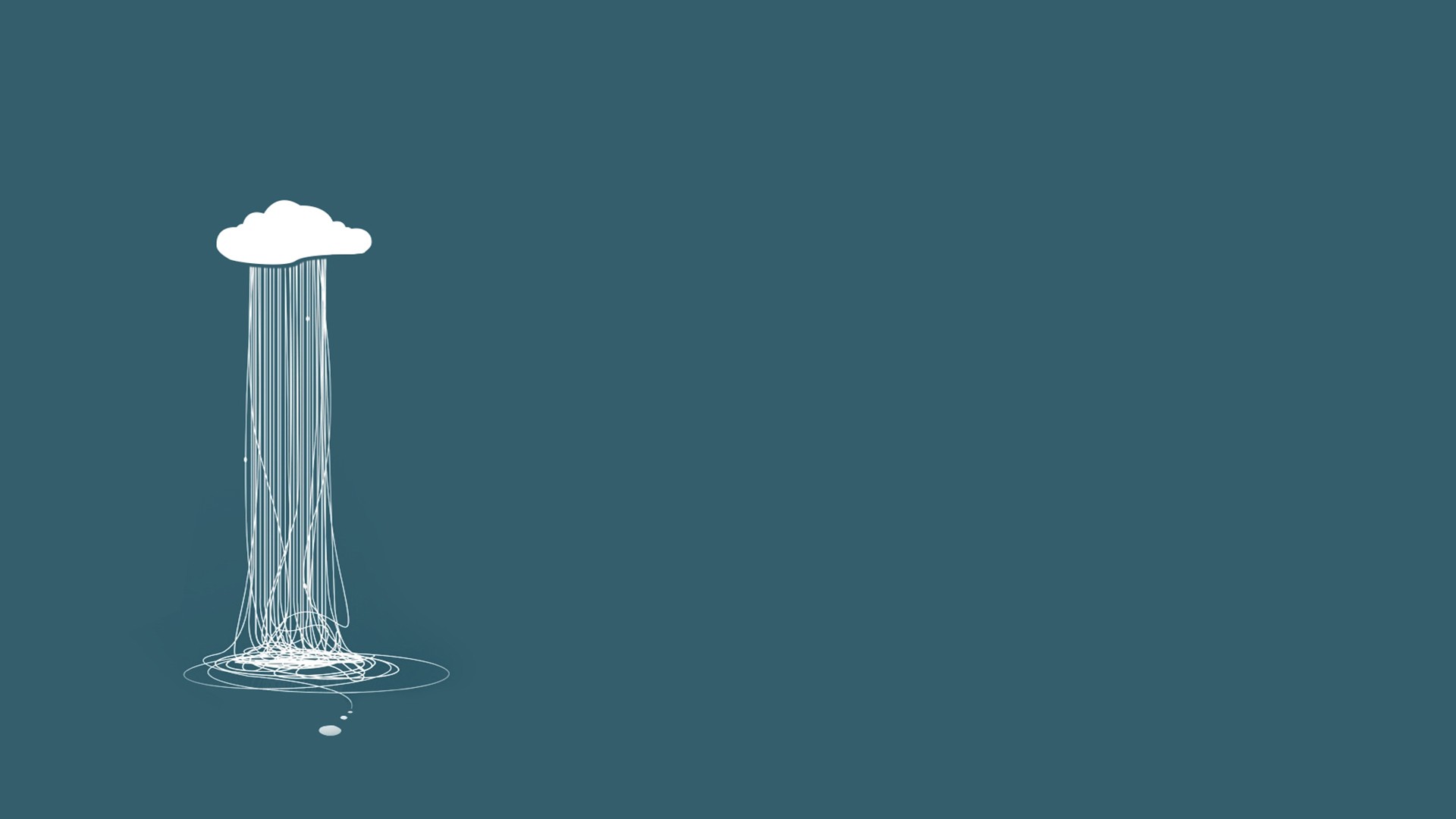 Description: A white cloud floating in the sky next to a tall pole with a rain cloud on top of it.