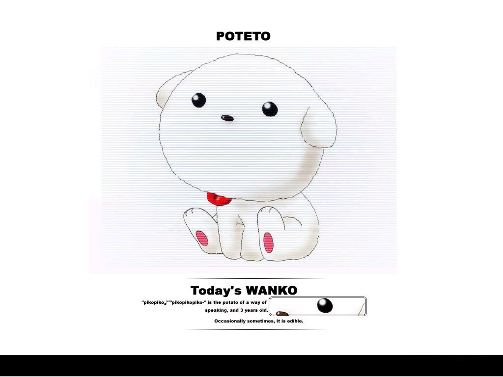 Description: A picture of a white dog with a red bow tie on it's neck and the words potatoto written in the bottom corner.