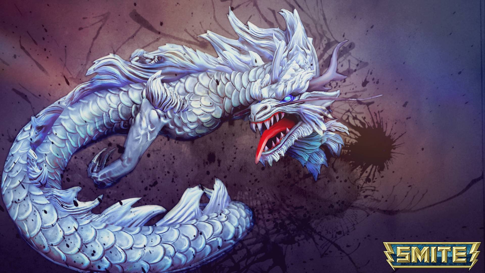 Description: A white dragon with red eyes and a black body with a red mouth and tail.
