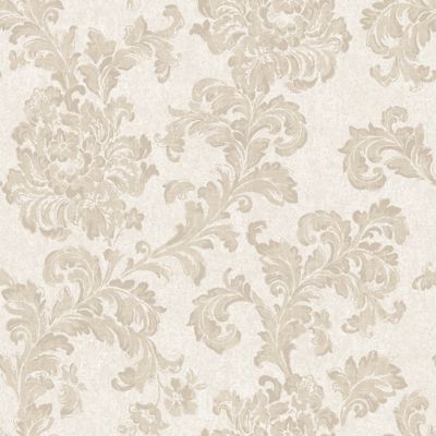 Description: A white wallpaper with a floral design on it's side and a light brown background with a white border.
