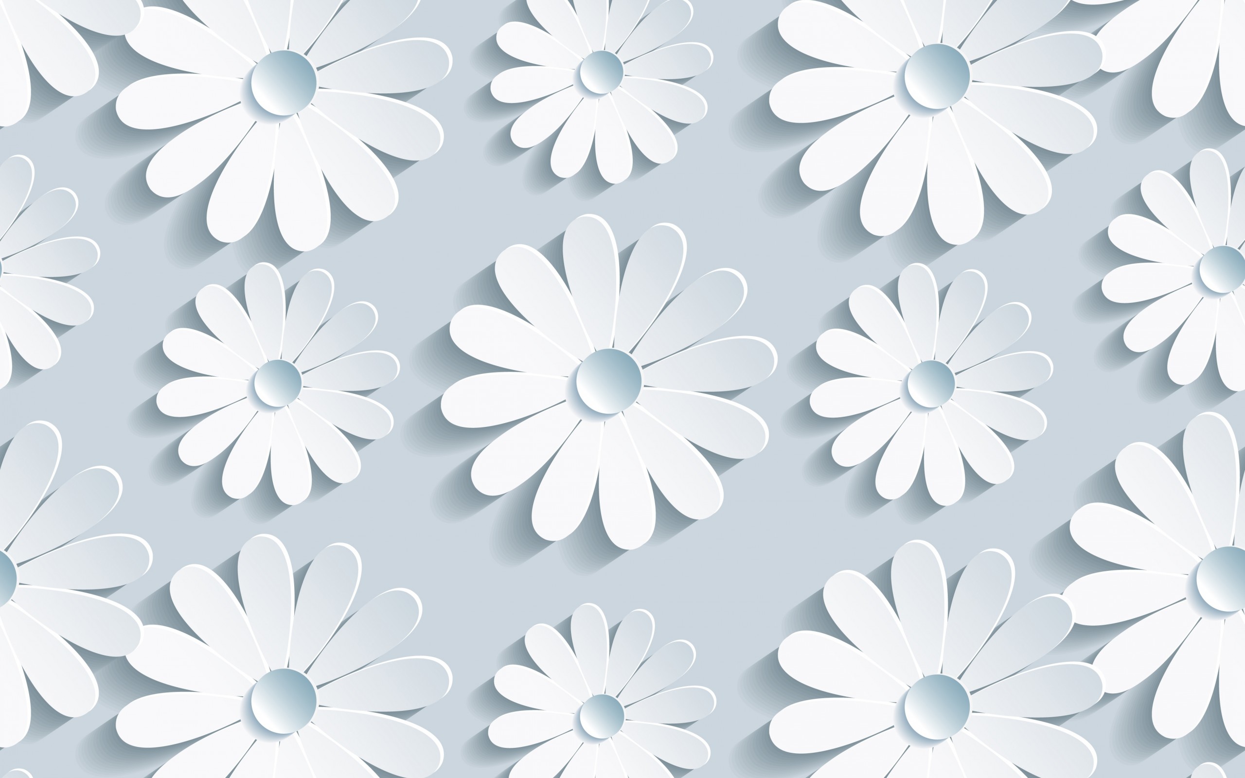 Description: A white flower with a shadow on a gray background with a shadow on the petals of the flower and the petals are cut out of paper.
