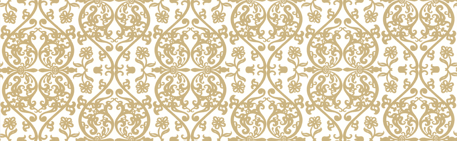 Description: A white and gold wallpaper with a design on it's side.