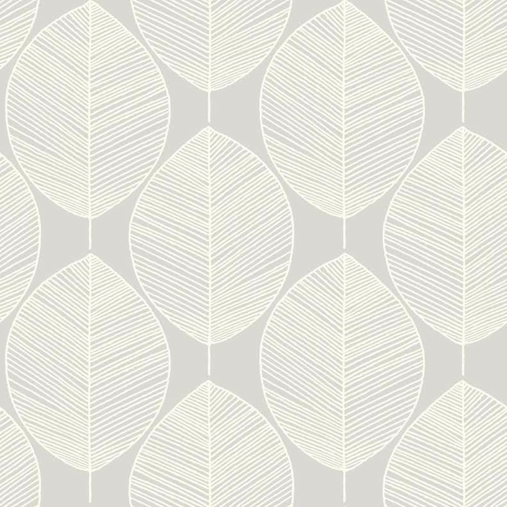 Description: A white and gray leaf pattern on a wallpaper background with a white outline of leaves on a gray background.