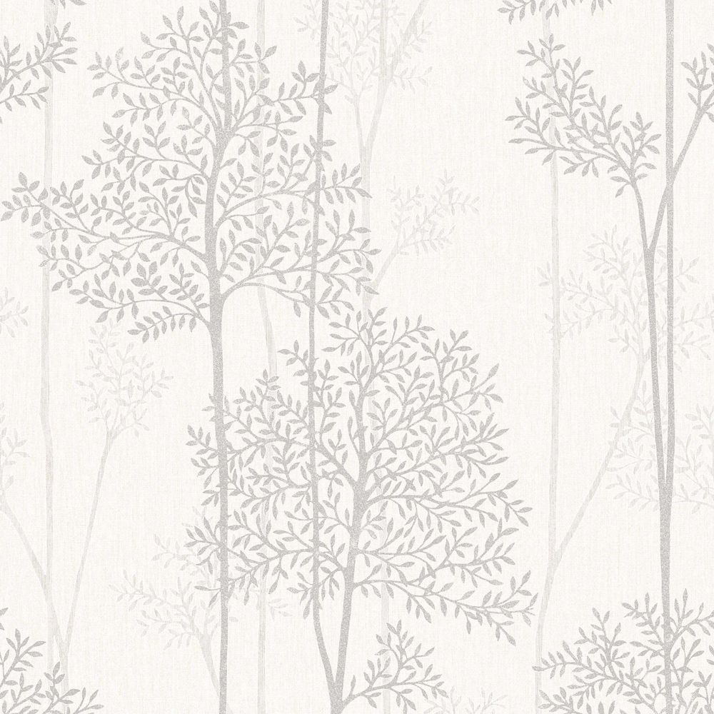 Description: A white and grey wallpaper with trees on it's side and a white background with a white border.