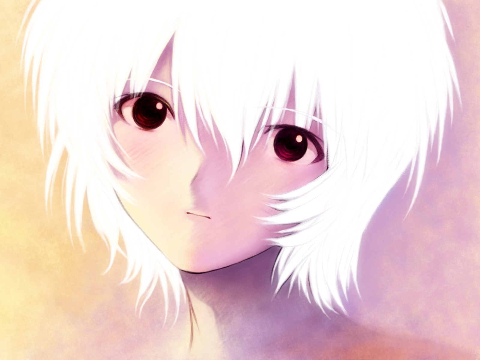Description: A white haired anime girl with a short white haircut and a black eyeliner.