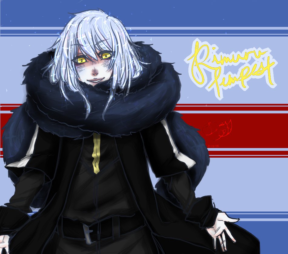 Description: A anime character with white hair and a black outfit with a hood on and a blue and red striped background.