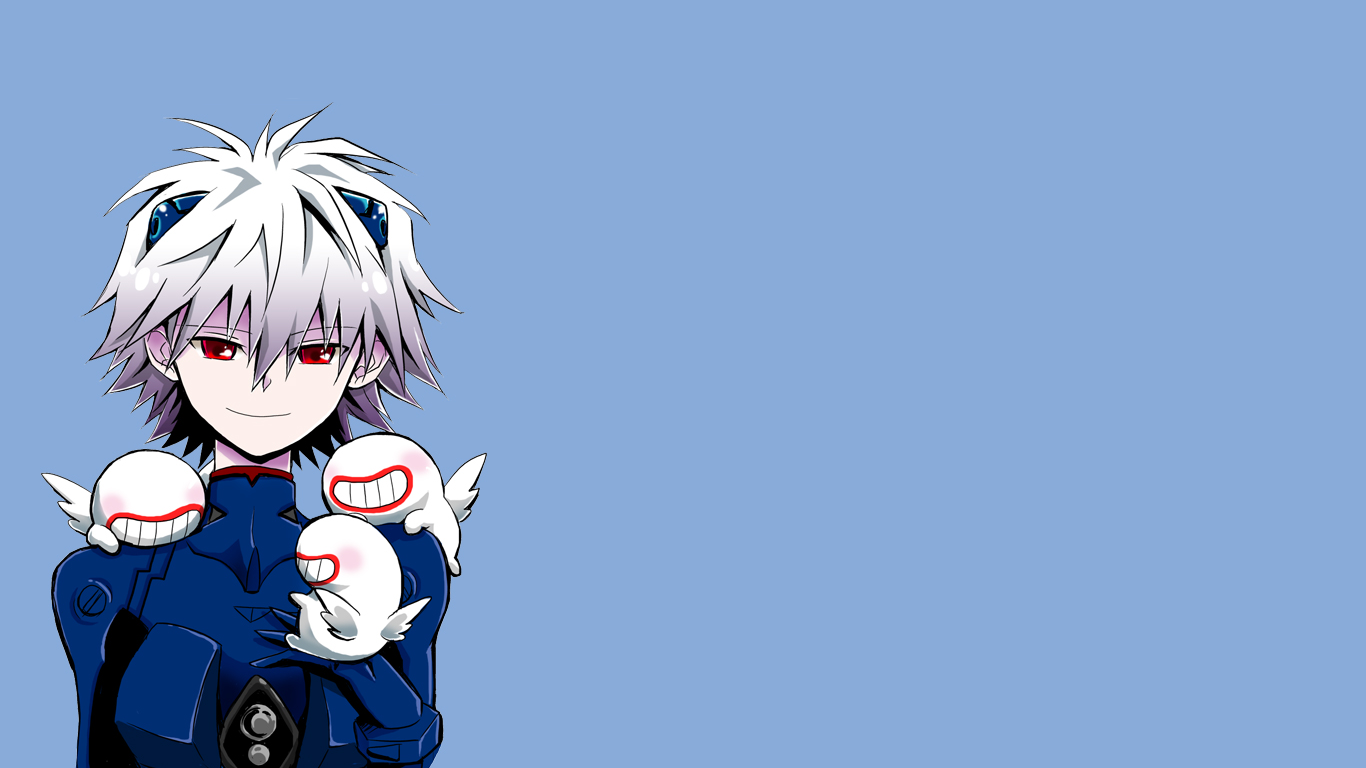 Description: A man with white hair and blue eyes holding a stuffed animal in his arms and a blue background with a blue sky.