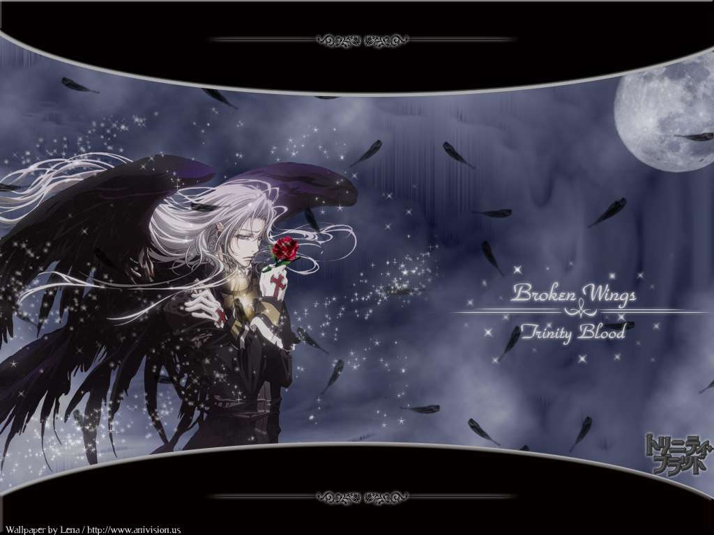 Description: A woman with long white hair and a black dress with a crow on her shoulder and a full moon in the background.