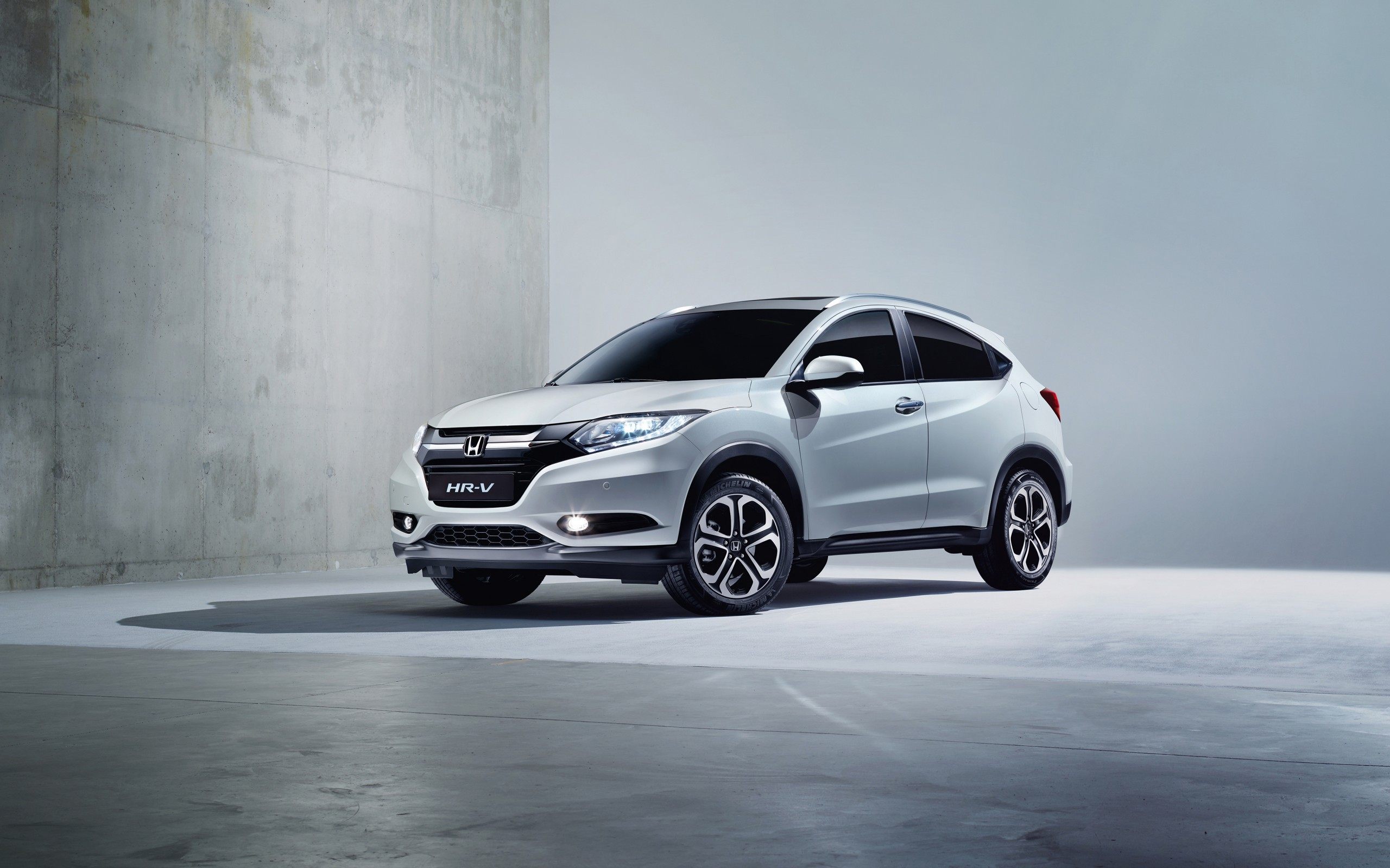 Description: A white honda hr - v is parked in a concrete area with a concrete wall behind it and a concrete wall behind it.