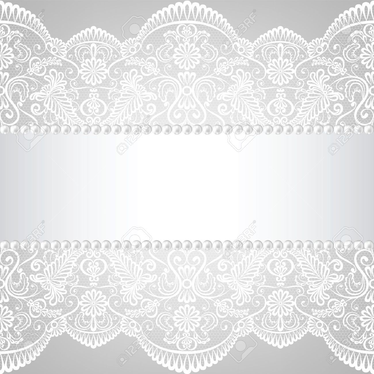 Description: A white lace border with a silver ribbon on a gray background stock photo - 1387992.