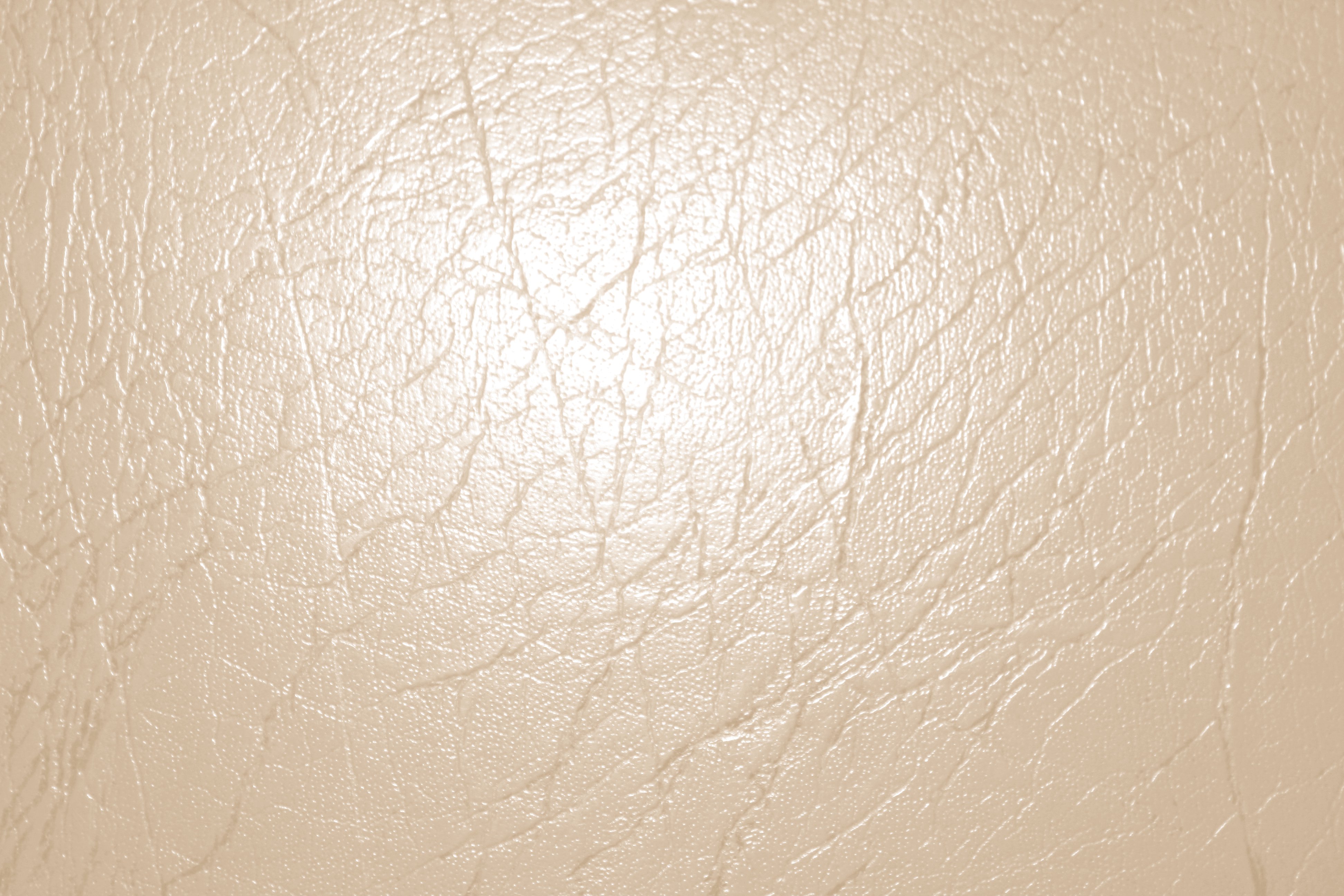 Description: A close up of a white leather textured surface with a light brown color and a black and white cat.
