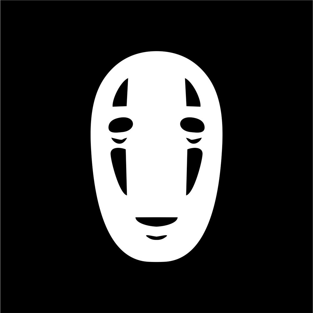 Description: A white mask on a black background with a shadow of a face in the center of the mask is a black square.