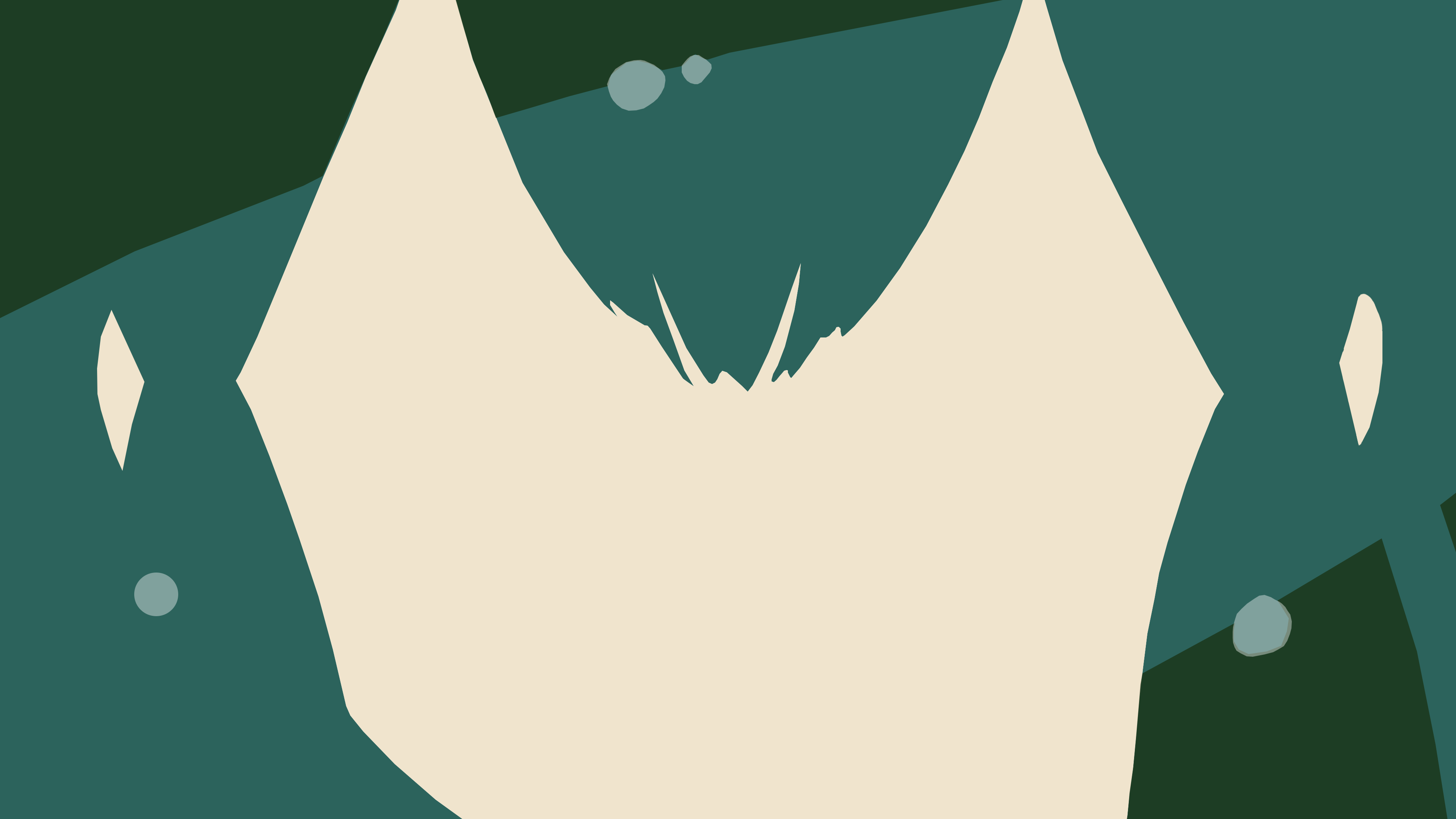 Description: A poster with a large white object in the middle of it's image and a green background with bubbles.