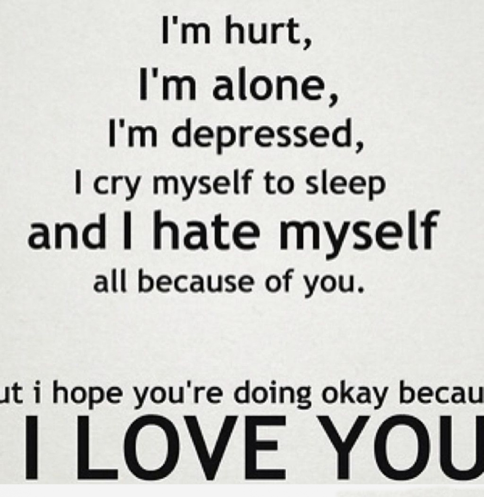 Description: A white paper with a black and white quote on it that says i hope you're doing okay because i'm hurt.