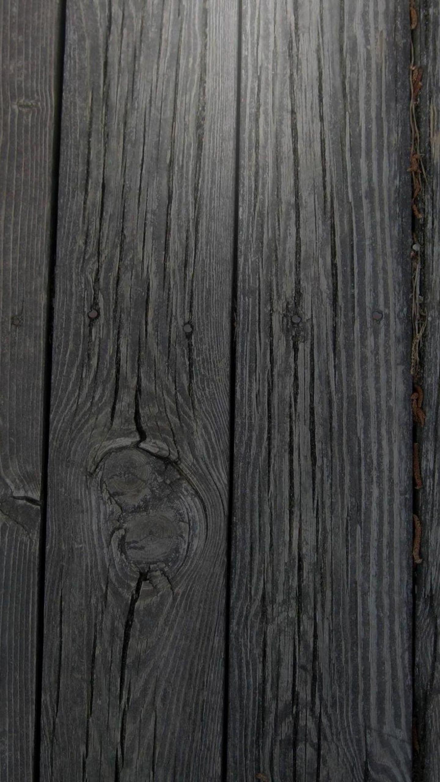 Description: A cell phone is laying on a wooden surface with a black background and a white phone with a black button.