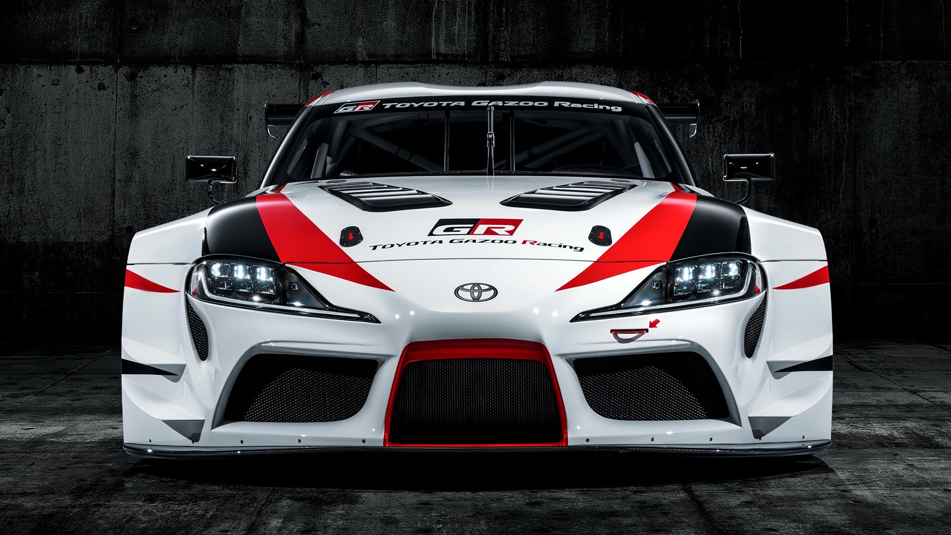 Description: A white and red car with a red stripe on it's hood and hood hoods on it.