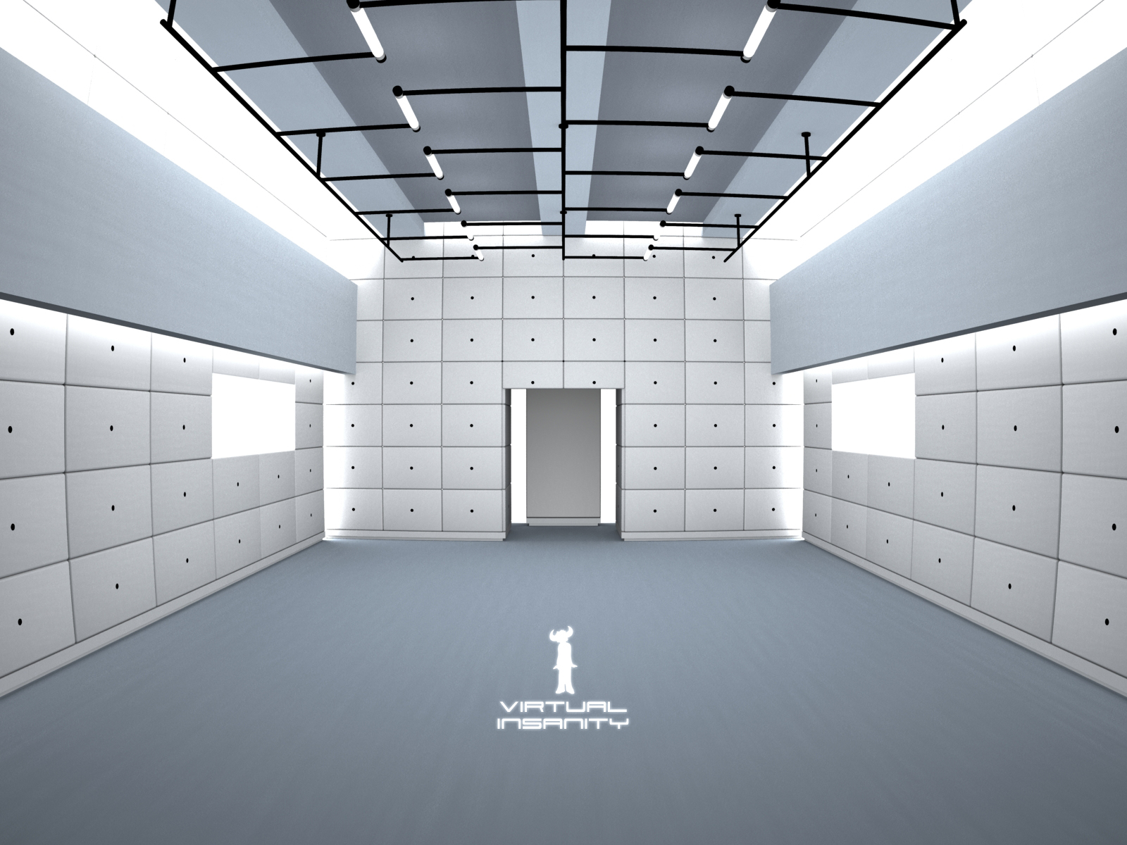 Description: A room with a white wall and a white door and a white floor with a white wall and a white door with a white door.