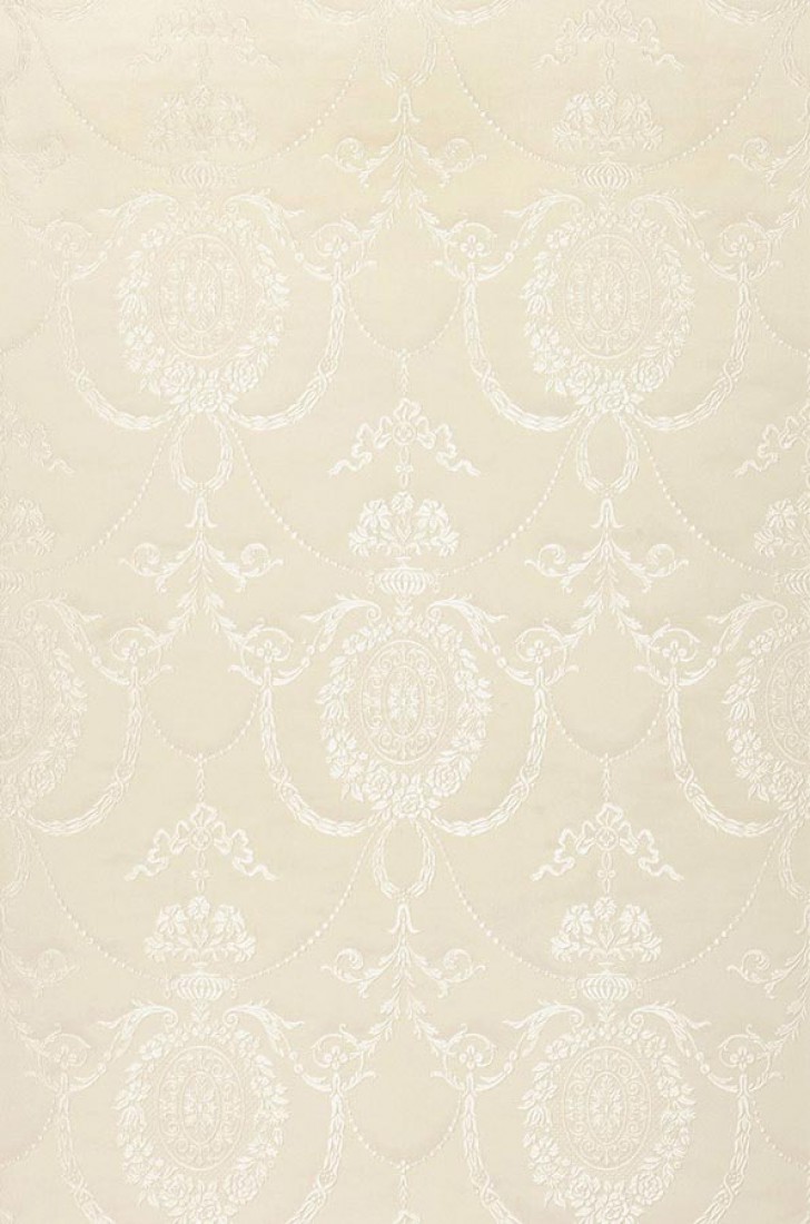 Description: A white rug with a pattern on it and a white background with a white border on the bottom of the rug.