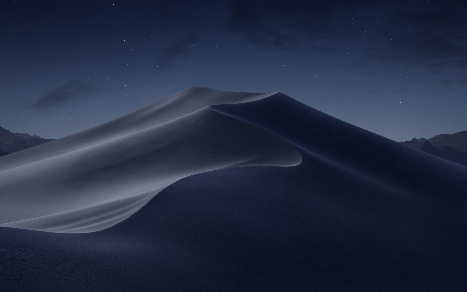 Description: A large white sand dune in the middle of a desert at night with a sky background and stars in the sky.