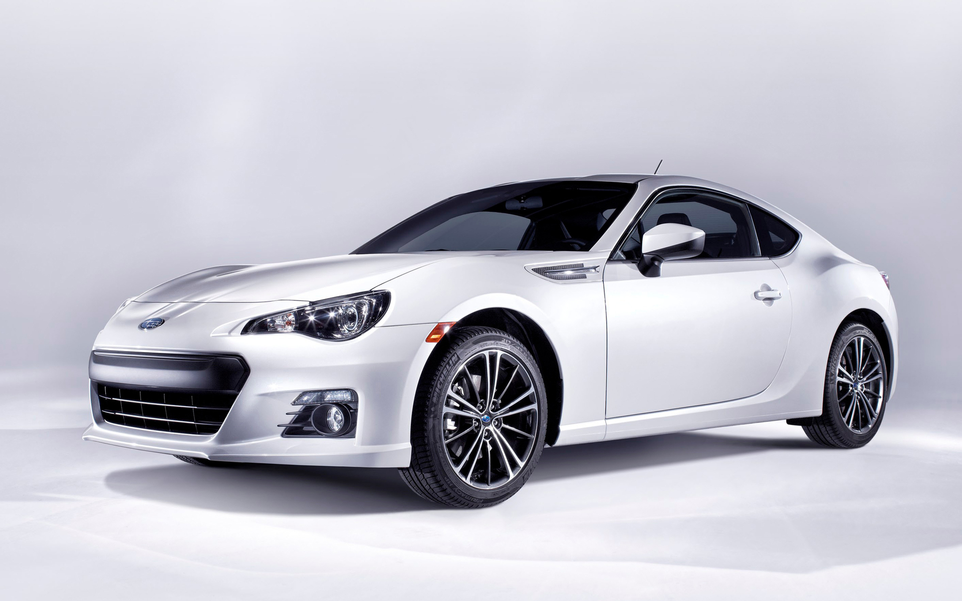 Description: A white sports car is shown in a studio photo with a white background and a white backdrop with a black stripe.