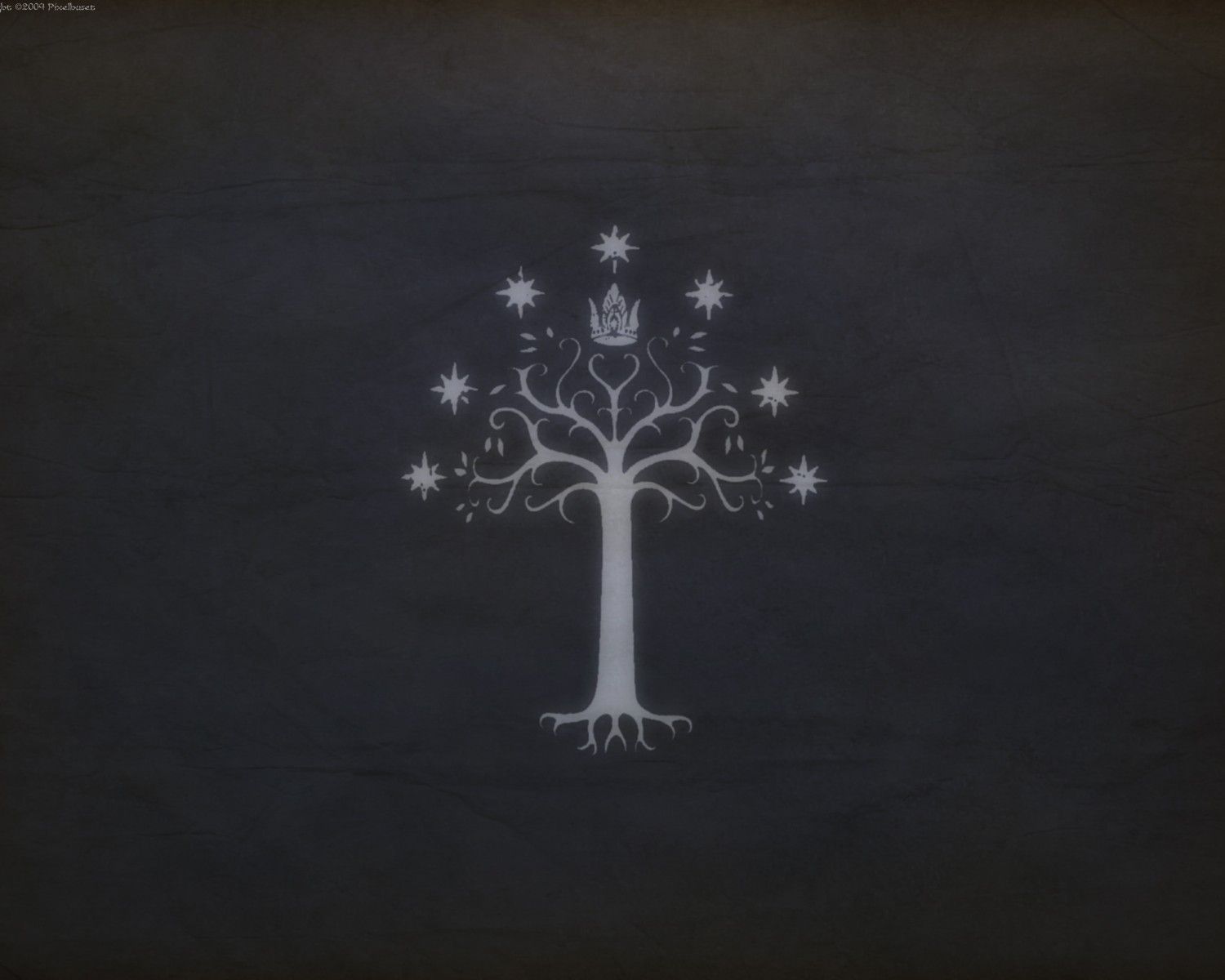Description: A white tree with stars on it on a black background with a white outline of a tree with white stars on it.