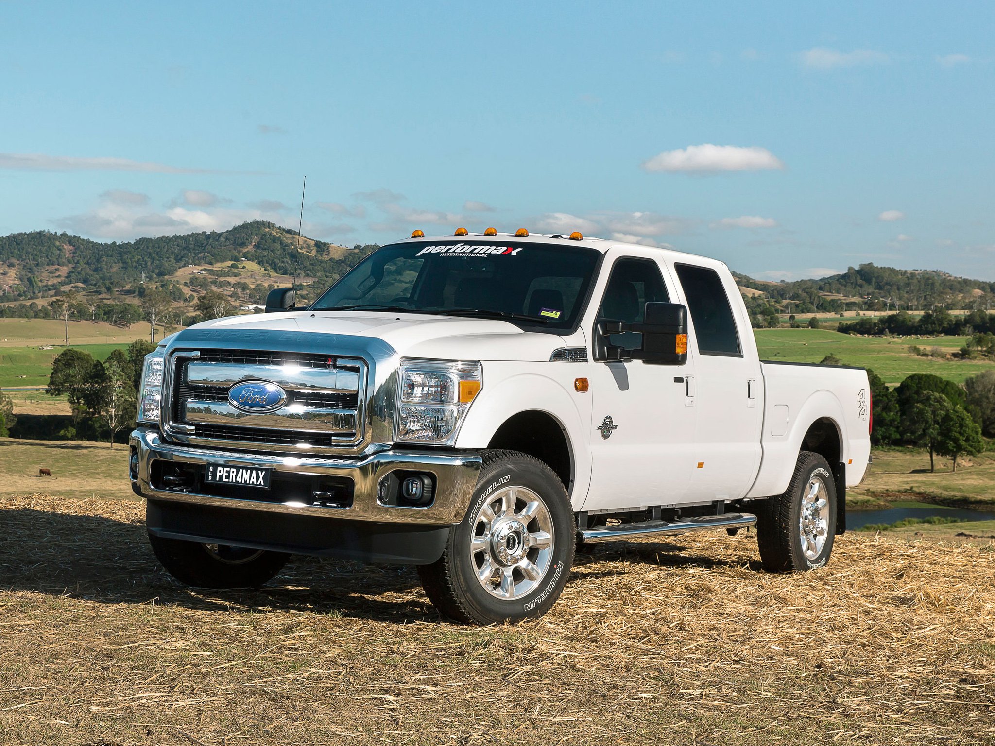 Description: A white truck parked in a field with a sky background and a hill in the distance behind it and a blue sky.