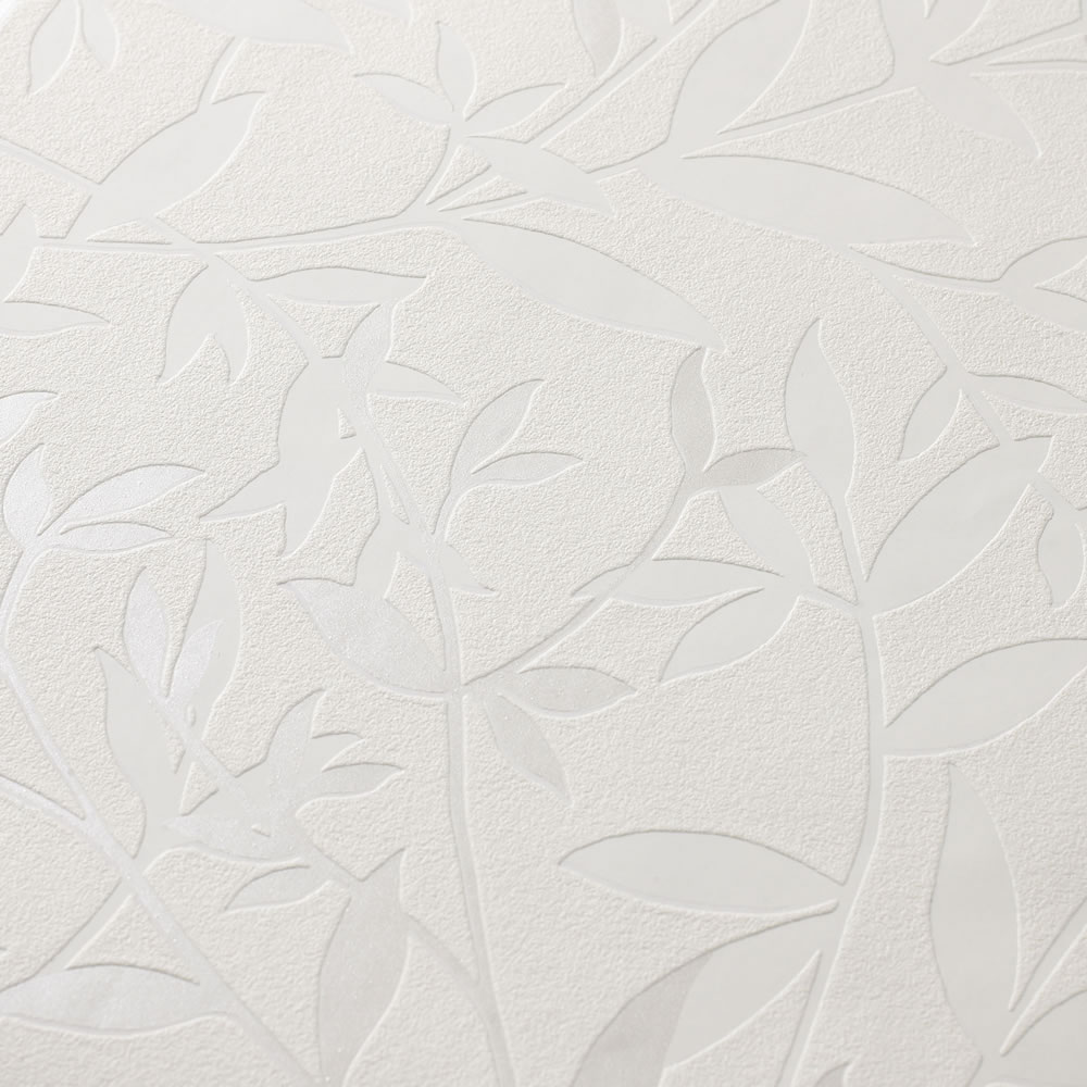 Description: A white wall with a leaf pattern on it's side and a white background with a white border.