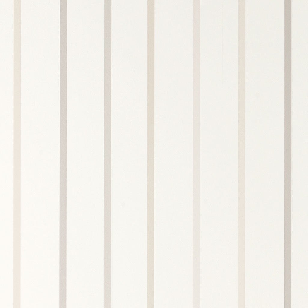 Description: A white wall with a white and black striped pattern on it and a black and white vase with a red flower.