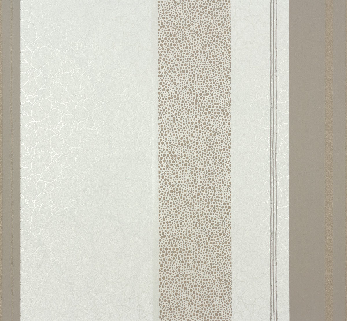 Description: A white wall with a white and beige wallpaper border and a white and beige wallpaper border with a white and beige stripe.