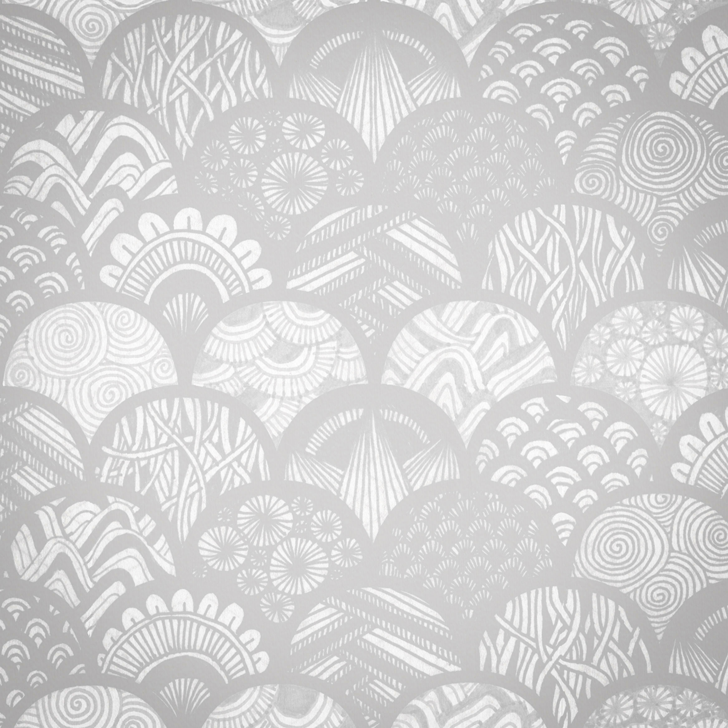 Description: A white wallpaper with a pattern of waves and circles on it's surface.