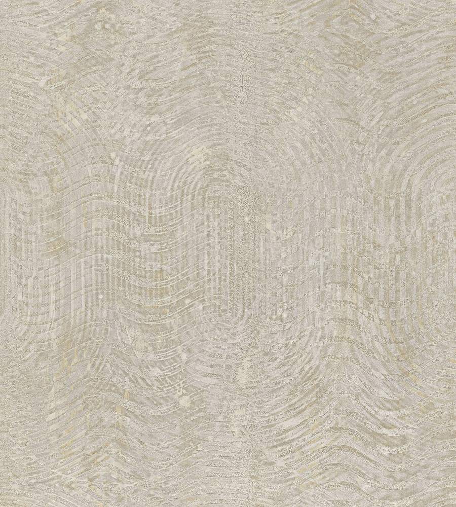 Description: A white wallpaper with a wavy design on it's surface and a beige background with a white stripe.