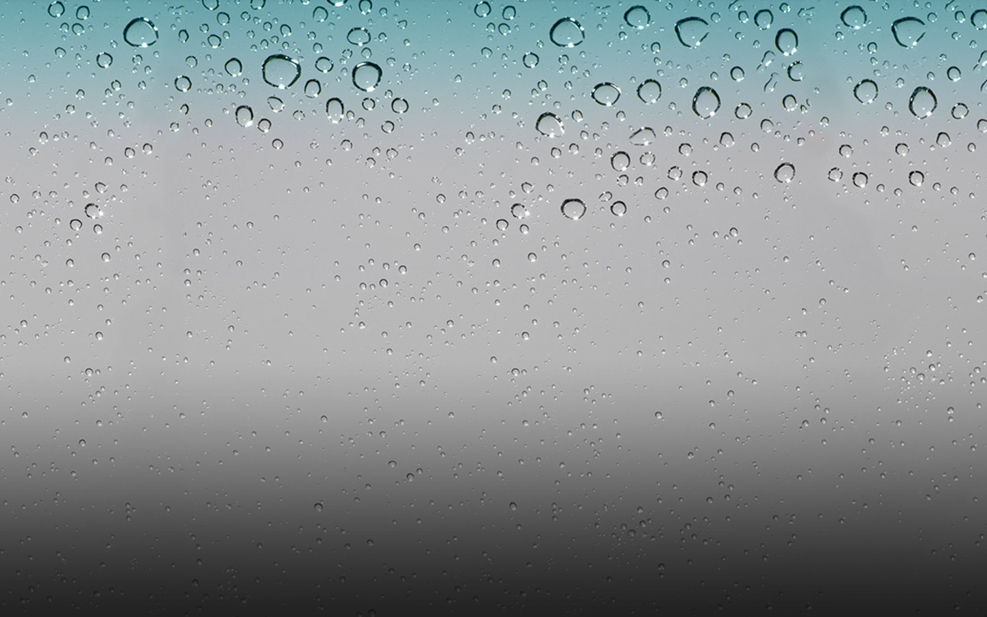 Description: A window with water drops on it and a sky background with clouds in the background and a blue sky.