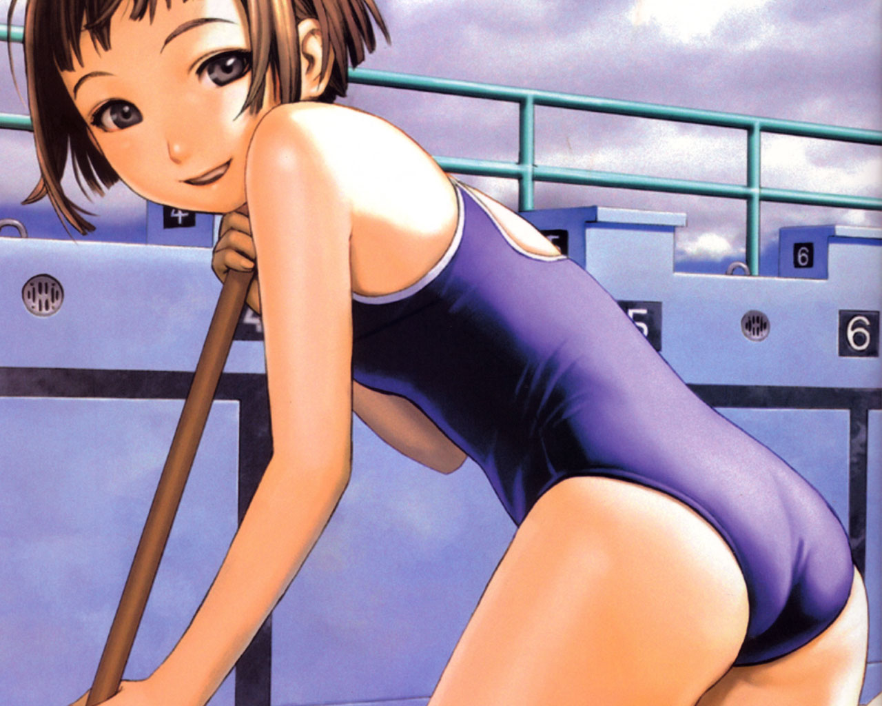 Description: A woman in a bathing suit holding a baseball bat in her hand and leaning on a fence with a baseball bat in her hand.