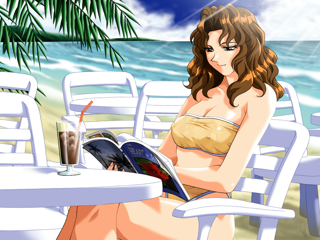 Description: A woman sitting at a table with a book and drink in her hand and a book in her other hand.