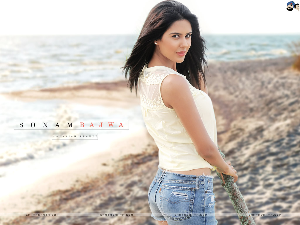 Description: A woman standing on a beach holding a surfboard in her hand and looking at the camera with a smile.