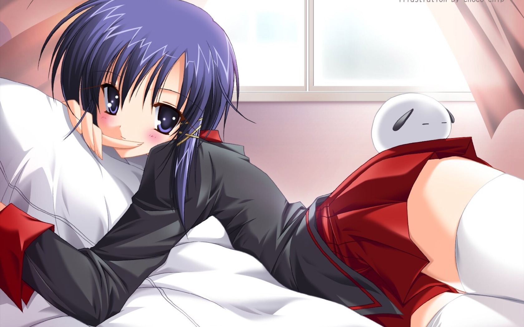 Description: A woman laying on a bed with a pillow and a stuffed animal on her chest and a window behind her.