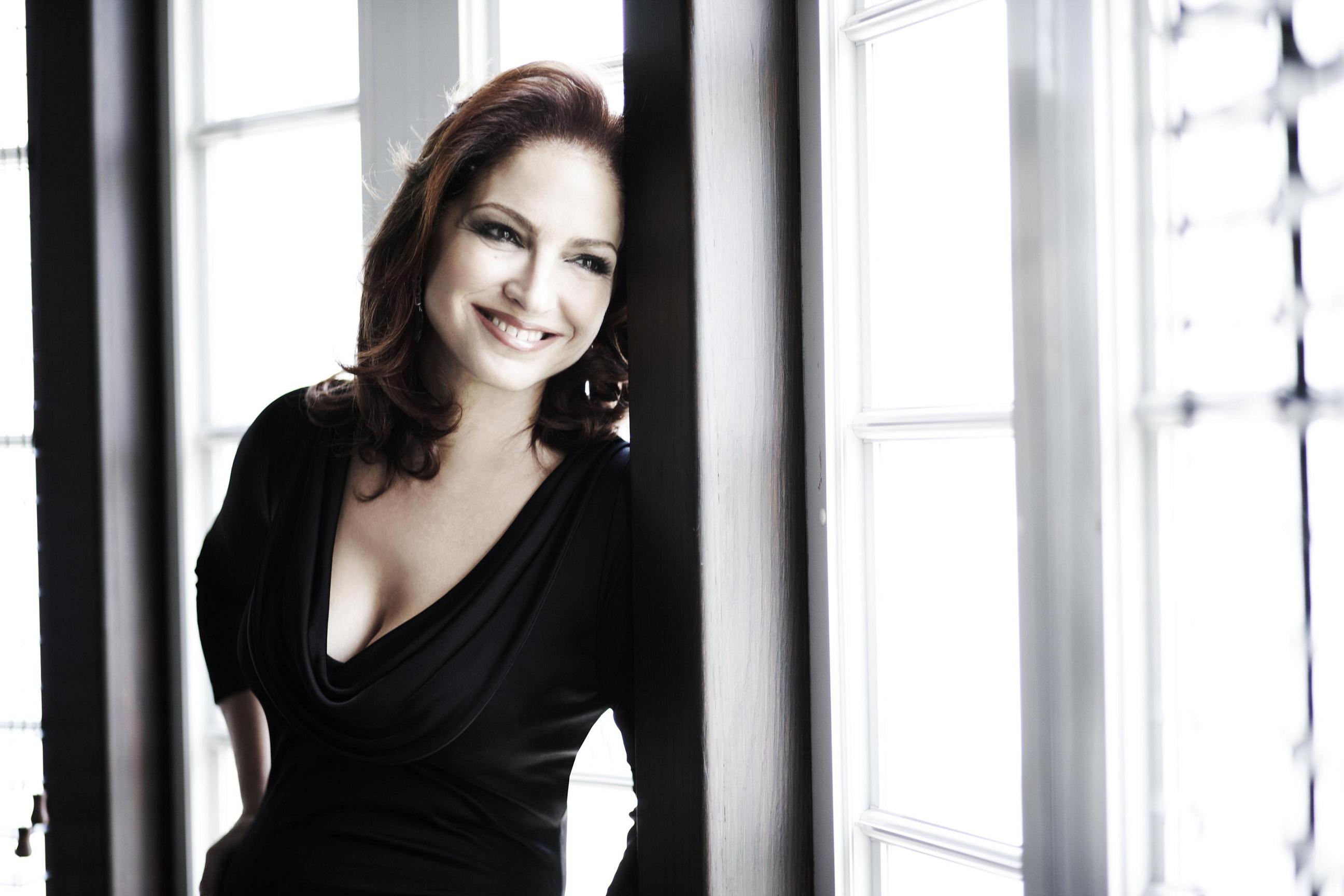 Description: A woman in a black dress leaning against a wall with her hands on her hips and smiling at the camera.