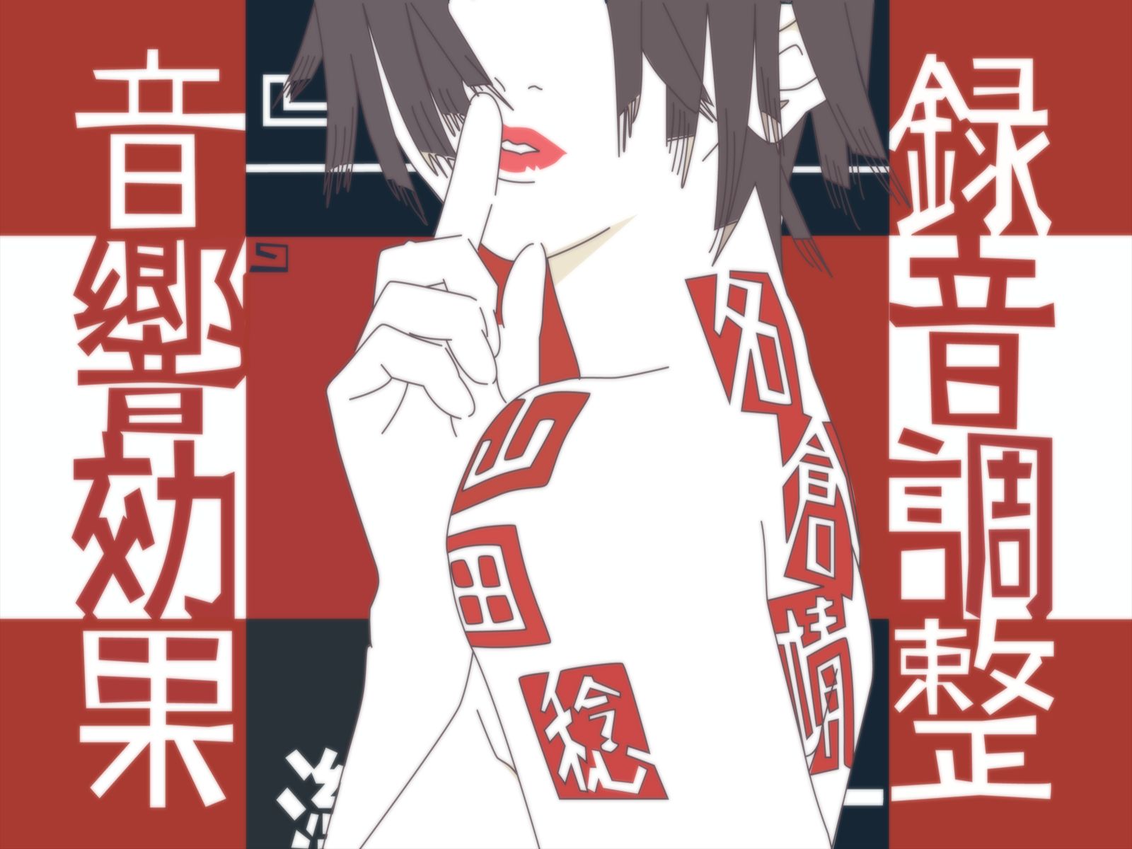 Description: A woman with black hair and red lipstick holding her hand to her face with a red background with white and black letters.