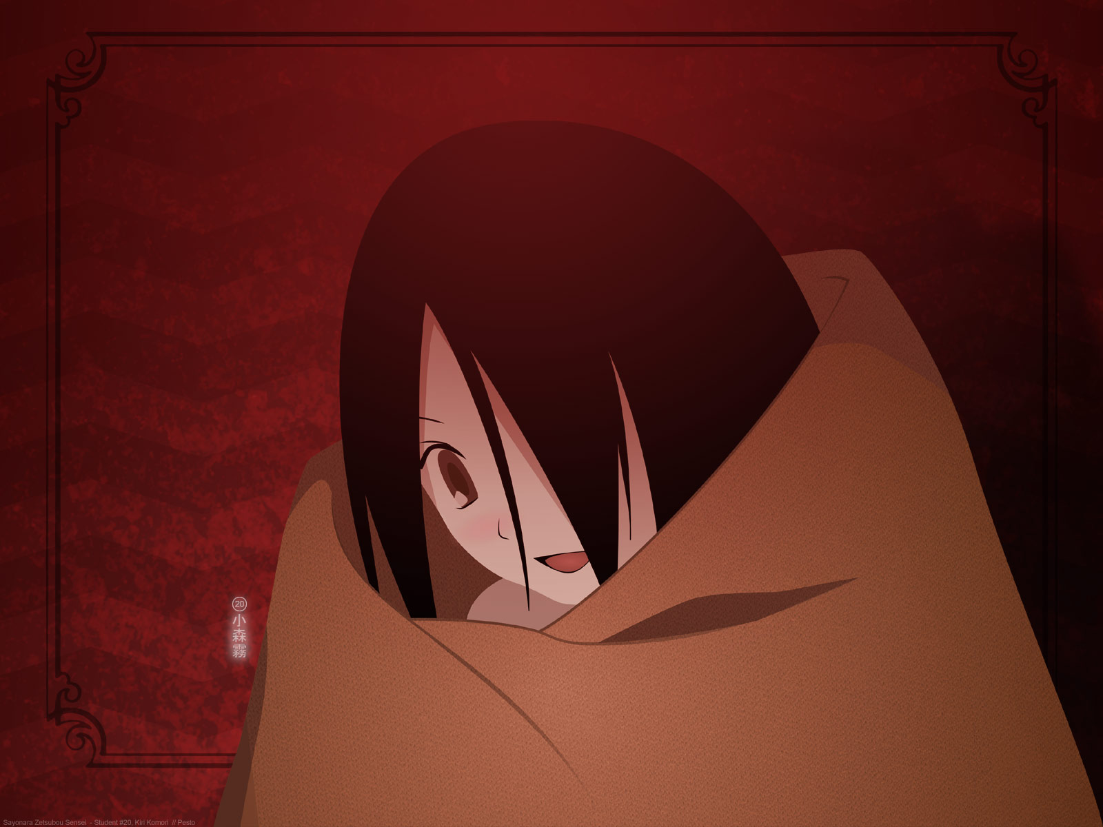 Description: A woman wrapped in a blanket in a room with red walls and a red wall behind her is a red light.
