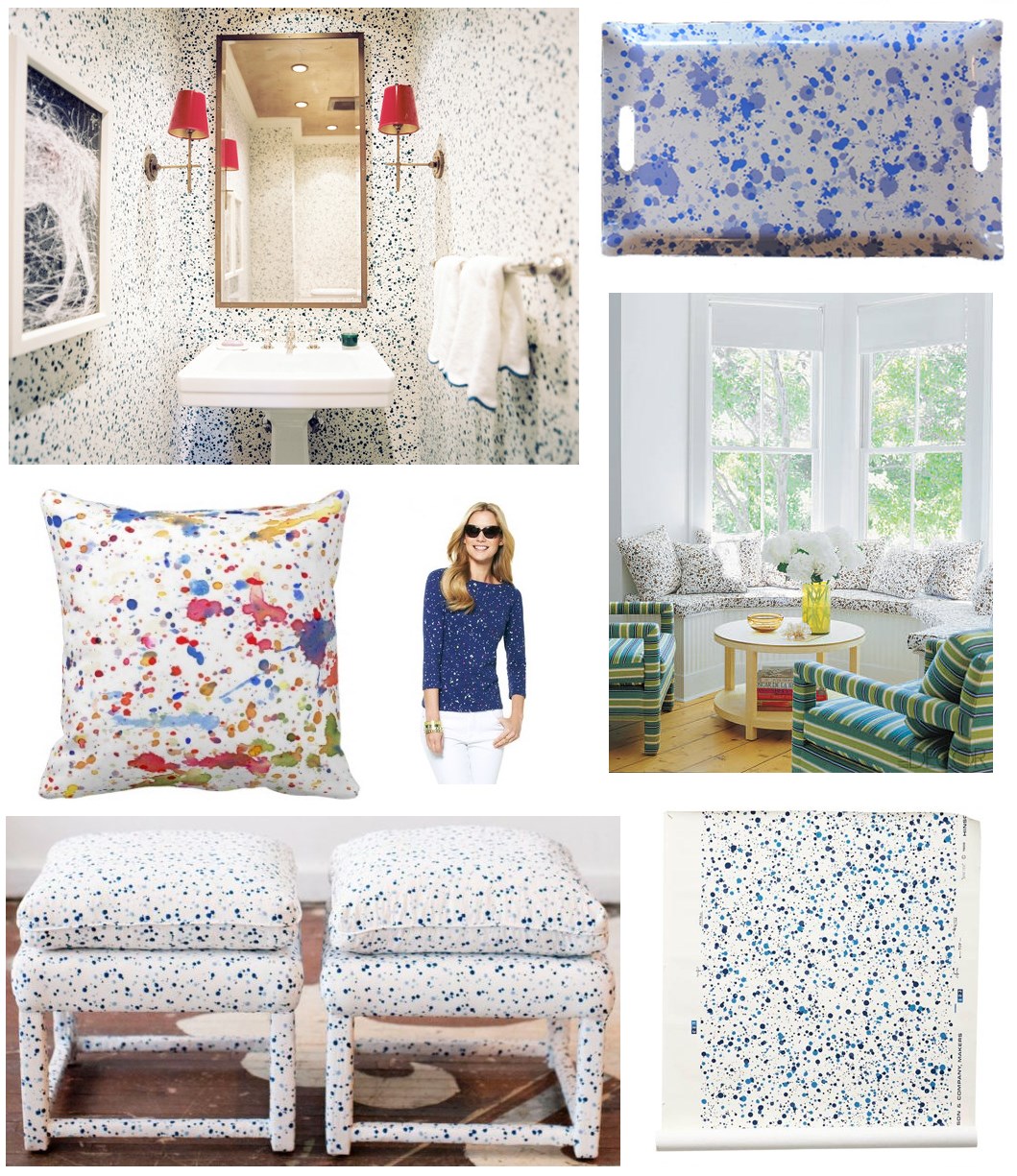 Description: A collage of photos with a woman in a blue shirt and a blue and white floral print pillow.