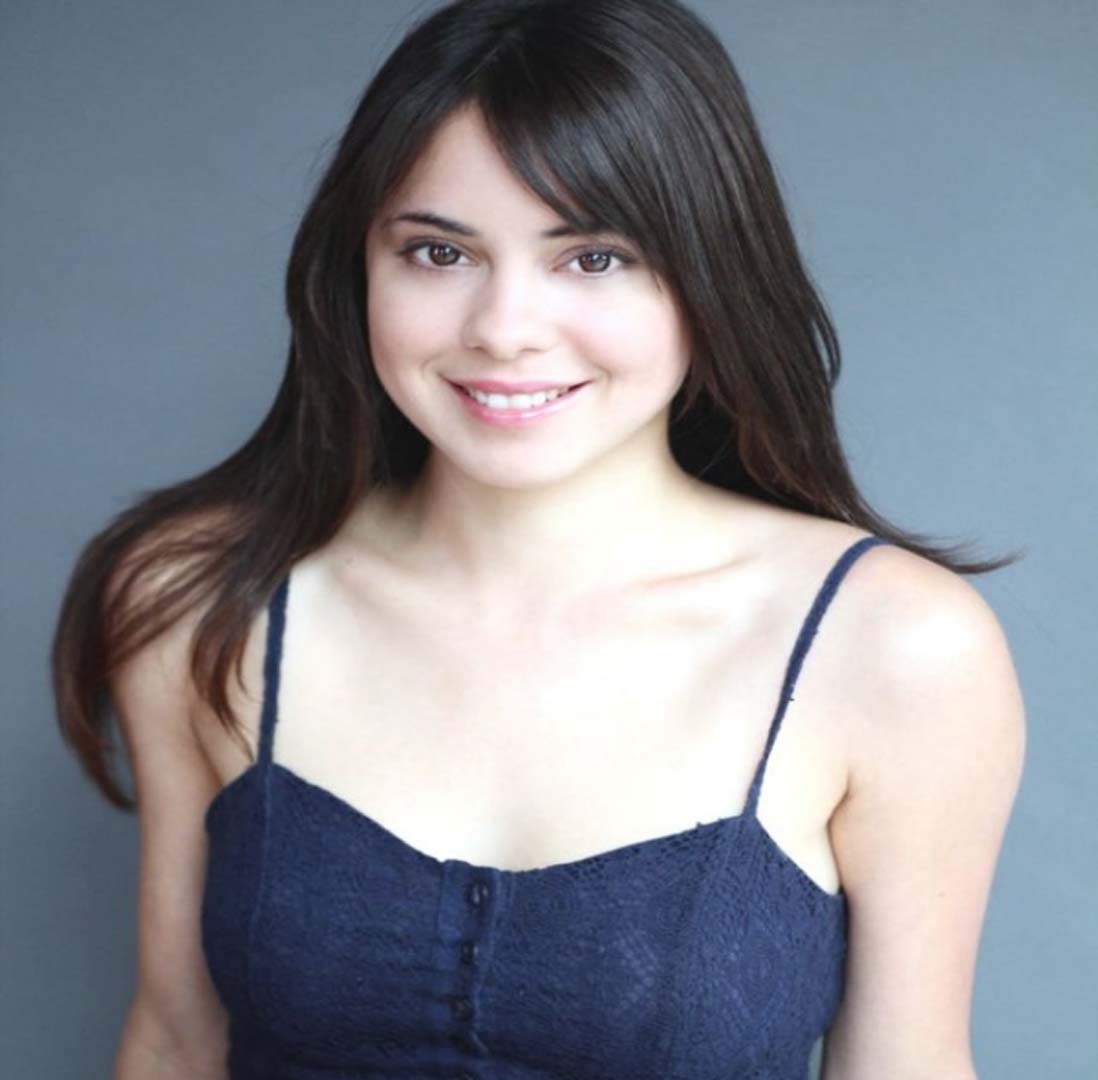 Description: A woman in a blue top smiling for a picture with a gray background and a gray wall behind her.