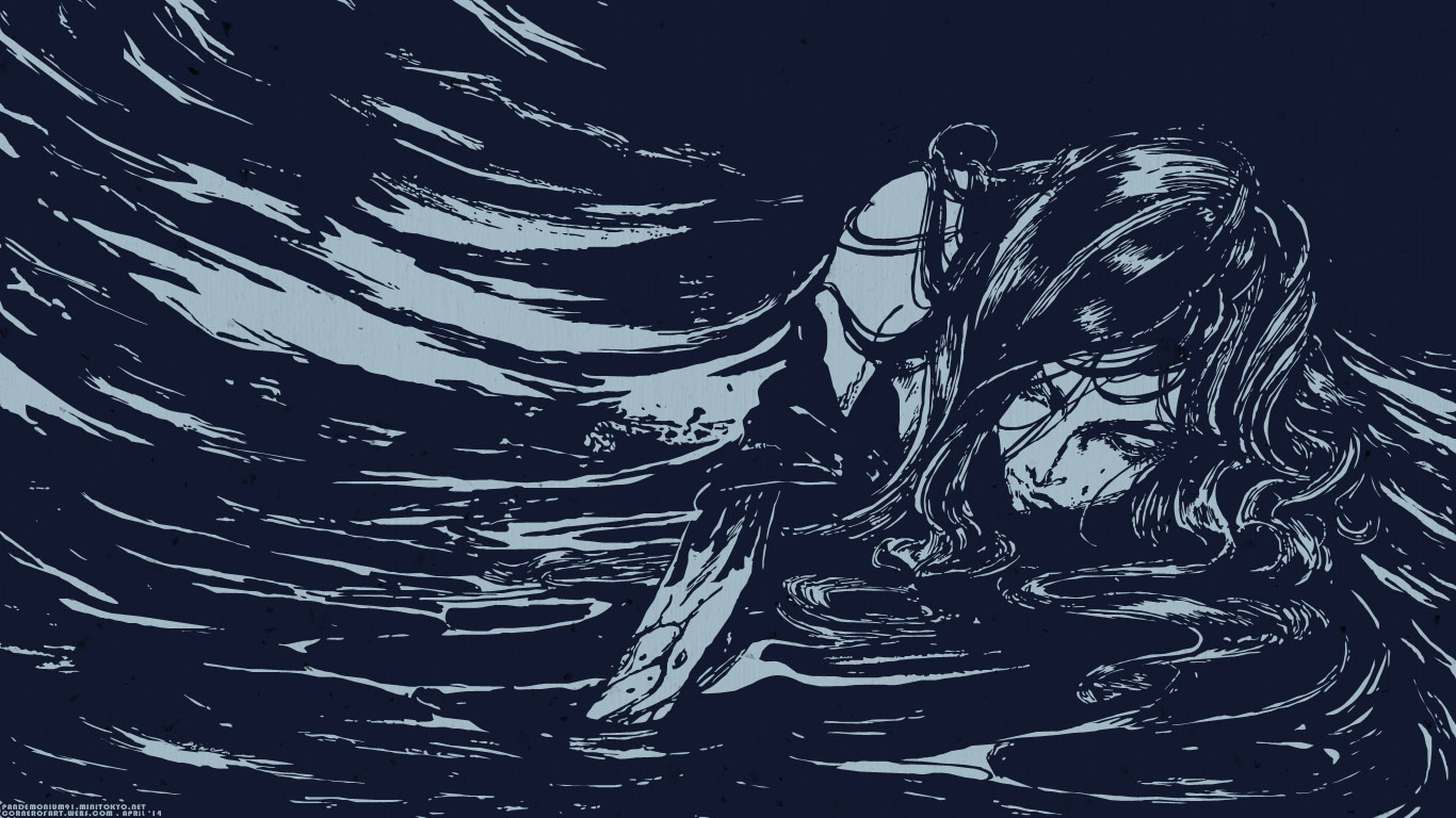Description: A woman in a boat in a body of water with a paddle in her hand and a wave behind her.